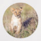 Ett ungt lejont sitta bredvid ett termitmound. Bilden togs på en safari i Kenya i Masai Mara Game-reservatet. © Angelika Stern