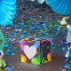 Barnens regnbåge färg abstrakt design.Den här överdelen kommer att göra alla rum vid party ljusare