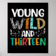 Lönsam ung vild och tretton olämpliga för barn flickor och pojkar. Tur 13-årsgrafik för flickor och pojkar att fira födelsedagar party i stil. Det är en underbar föreställning för safari-djur älskare 13-åriga son, dotter, syster, bror... Trettonde 13-årsjubileum för flicka och pojke som blir 13-åring. Coola med roliga citat av unga vilder och tretton för barn som kärlekar skogsdjur och snyggt.