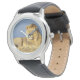 Barn med klassiskt svart läderband som visas med ett lejont foto av vilda djur. Välj den här klockan från flera stilar. Anpassa den här klockan eller köp som det är. Lagrar-bild