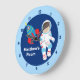 Kall raketfrakt- och astronautrymden tar tid på för en pys rum. Skräddarsy denna blåttvägg tar tid på med ditt barns namn eller annan text. Fantastiskbilder vid www.prettygrafik.com