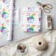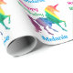 Ungar för grattis på födelsedagen för personligregnbågeUnicorns som slår in papper. Personifiera denna roligt och färgrika unicorn som slår in papper i ljus rosa-, grönt- och blåttstilsort. Silhouetten av unicornen i en regnbåge av vattenfärgpenseldrag av rött som är orange, gulnar, görar grön, blått och lilor. Vitbakgrund låter det ljusa färger stativ ut beautifully. Text läser GRATTIS PÅ FÖDELSEDAGEN för skräddarsy themed slående in papper för unicornen för födelsedagflickan. Roligt till sjalen en gåvaför barn, tweens, och tonåring vem kärlekunicorns och magical varelser. Färgrik, modern och stilfull underbar för themed magical födelsedagsfester för unicorn.