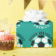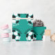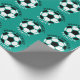 Ungar för sportar för grattis på födelsedagenfotbollpersonlig som slår in papper. Perfekten för en themed födelsedagsfest för fotboll detta roligt och färgrika slående in papper kan skräddarsy med namn. Svarten buktad text ovanför geometrisk svartvit fotbollboll läser GRATTIS PÅ FÖDELSEDAGEN. Personifiera med namn i nedanför boll för vittext. Sportar - themed födelsedag som slår in papper.