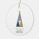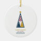 Lägg till namn i barn till denna vackert enkla julgran-dekoration med geometriskt mönster som samlas för att skapa ett julgran, med en fotomall på baksidan där du kan lägga till foto från barn, perfekt för en lärargåva, all text är helt och hållet anpassad för dina egna personliga behov.