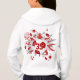 Den här fotnoten i roligten innehåller en "explosion" av olika storleka, röda och vita fotbollar och grått, röda och vita stjärnformer - anpassa med idrottsmannens jersey-nummer - design finns på baksidan av hoodie men kan flyttat till eller dupliceras på framsidan - av katz_d_zynes