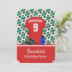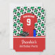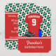 En cool inbjudan till ett fotbollstemat event som en födelsedag eller pyjamasfest. Denna moderna fotbollsinbjudan har en fotbollströja på framsidan med anpassningsbart efternamn och nummer, ett par fotbollsskor och en vattenflaska, samt evenemangets detaljer. Bakgrunden visar svarta och vita fotbollar mot en fond som ser ut som en fotbollsplan. På baksidan finns en mall för att lägga till dina egna detaljer om fotbollsevenemanget. Om du vill ha en annan färg på denna design, kontakta oss via giftsbonanza-butiken innan köpet för att diskutera.
