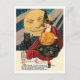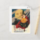 Unge häxkvinna håller pumpa i fullt måne vykort