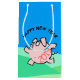Lustigt illustrerad tecknad av att rosa gris går (illustration nr 6) i genomskinlig bakgrund med anpassade texter: GOTT NYTT ÅR och 2019. Du kan enkelt ändra text (teckensnitt, storlek, färg och placering) och bakgrund färg genom att klicka på anpassningsknappen. Utformning på liten presentväska med blå bakgrund och liggande. Finns med andra lustiga illustrationer av tecknaden. Matchande hälsningskort, kläder, hemprodukter, kontorsprodukter med mera.. Perfekt för kinesiska nyåret Gris 2019 eller födelsedagen (människor födda i Gris år) eller idrottsutövare. — "Gris (豬) är det tolfte och sista tecknet på det äroriska Grenar (亥). I den kontinuerliga sexagenarcykeln motsvarar varje tolfte år Hai och kallas allmänt "Gris år" (豬 年). Det finns fem typer av Grisar, efter det kinesiska inslag. De är i ordning: Metall, Vatten, trä, brand och jord. I den japanska djurparken och i den tibetanska djurparken skall Gris ersättas med galningen[1]. I Dai zodiac ska Gris ersättas med elefanten. I djurparken Gurung skall Gris ersättas med hjort. (...) Personer som är födda inom dessa datumintervall kan sägas vara födda under "Gris år", men har även följande grundläggande tecken: 10 februari 1923 - 29 januari 1924 = Vatten Gris, 4 februari 1935 - 23 januari 1936 = Wood Gris, 22 januari 19 47 - 9 februari 1948 = Fire Gris, 8 februari 1959 - 27 januari 1960 = Earth Gris, 27 januari 1971 - 14 februari 1972 = Metall Gris, 13 februari 1983 - 1 februari 1984 = Vatten 31 januari 1995-18 februari 1996 = Wood Gris, 18 februari 2007-6 februari 2008 = Fire Gris, 5 februari 2019-24 januari 2020 = Earth Gris, 23 januari 2031-10 februari 22 032 = Gris Metall (...)" Wikipedia