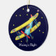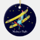 Keramisk prydnad med illustrationen av en tecknadbiplane. Den pilot- ungen tar ett flyg samman med hunden och katten. Sätt din egna text på prydnaden och välj din egna bakgrundsfärg! Underbar prydnad till hängningen i ett barnrum.