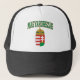 Magyarország…, Det ungerska namn för landet som vi vet som Ungern. I ungerska färger av rött, vit och grönt med den ungerska vapenskölden.