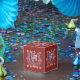 Djup röd bakgrund för vintage Ungersk konstdesign. Blåformat, hjärta, blommor och blad tillför anteckningar om grönt, guld och vitt.