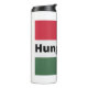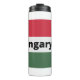 Ungersk fotbollsspelare som använder punkt som boll med den ungerska flagga i bakgrunden