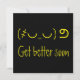 Skicka glad uppmuntran med den här roligten Unicode-kortet "bli bättre snart", som innehåller ett starkt nyvunnet gult ledsen ansikte och ett lekfullt handskrivet stil-meddelande på en fet svart bakgrund. Internet-inspirerad emoji- och textkonsdesign ger ett snabbt glimt, med enkla alternativ för att anpassa meddelandet och färg för alla tillfälle. Perfekt för skapar vänner, familj eller kollegor som leker samtidigt som de önskar dem ett snabbt tillfrisknande i ett uppseendeväckande, modernt stil.