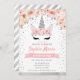 Unicorn First Födelsedagsfest inbjudan. Utformningen av kutéer i faux glitter silver med blommigt accent. Koral, rosa och vit. Perfekt för en magisk firande på 1:a dagen.