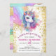 Unicorn 3:e födelsedagen | Rainbow Guld Glitter Inbjudningar