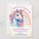 Unicorn 7:e Birthday Guld Rosa Magic Rainbow Inbjudningar