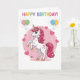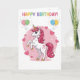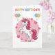 Celebrate a special milestone with this enchanting unicorn birthday card, perfect for a magical birthday celebration. Featuring a whimsical pink unicorn with a sparkling mane and colorful balloons, this card captures the wonder of a little girl's big day. The design is fully personalizable, allowing you to easily customize the heartfelt message inside the editable template. Ideal for parents, grandparents, or friends, this high-quality card serves as a beautiful keepsake for a daughter or niece. Its soft pastel palette and rainbow accents make it a charming choice for any unicorn-themed party, ensuring your birthday wishes stand out with a touch of magic and style.