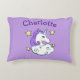Unicorn Design Accent Pillow med anpassade text och bakgrund färg.
