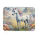 En flexibel magnet som visar en drömbild av en vit enhörn med en regnbåge som står i en fält av blommor. I bakgrunden finns stora berg. Perfekten är en gåva till ge till dem som kärlek magiska och mystiska unicorns. Innehåller generativ innehåll.