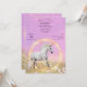 Magiska enhörn som springer i fält av blommor med rosa och lavender himlar i bakgrunden och en cirkel av gnistor. Fotomall på baksidan för ett foto på Birthday Girl. Perfektens inbjudan till en speciell flickas födelsedagsfest!