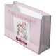Happy 1st birthday little girl! Celebrate the first birthday in style and wrap that 1st birthday gift in a special unicorn gift bag. This large gift bag features a cute illustration of a happy unicorn, a magical birthday cake, heart balloons and little hearts in kawaii-style. Personalize with the 1st birthday girl's name! Designed by Best Baby Gifts - given with love.