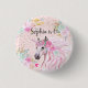Unicorn Girly Rosa Blommigt Guld Glitter Namn Knapp