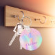 Unicorn glitter rainbow monogram namn holografi nyckelring