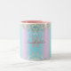 Unicorn HoloGraph Glitter mugg - trendig mousserande färgad mugg med blandad turkos, rosa och mauve och lätt gult glitter. Du kan anpassa mugg genom att lägga till ditt namn och initialer.