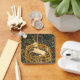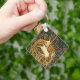 Nyckelkedja med medieval tapesi The Unicorn in Captivity (1495-1505). Den sjunde tapeten i Unicorn Tapestries - även känd som The Unicorn Rests in a Garden - visar en vit unicorn med en blå collar sitta inuti ett staket. Grönt gräs och vackra blommor omger enmajsen. En fantastisk gåva till medeltida konstsamlare och fantasi älskare!