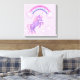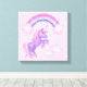 En fantasi canvas wrap skrivs ut med lila unicorn, pastellregnbåge och rosa moln med lila gräns och stjärnstoft. Ett söt till prinsessans rum.