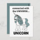 Unicorn kopplad till den ursprungliga utformningen av Universe Unicorn-kortet från Nisha Prabhu. Bygg upp cosmos magi med vårt "Unicorn Connected with the Universe"-vykort! Den här fantastiska utformningen har en stor enhörning som symboliserar den gränslösa kopplingen mellan fantasi och universum. Perfekt för att skicka stollig till vänner eller lägga till en magisk spiral till din samling. Oavsett om du firar ett särskilt tillfälle eller bara vill uppmärksamma någon på dagen, så är det här vykortet din portal att föreställa sig! Ta din kreativitet i dag och låt den stiga genom stjärnorna!