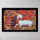 UNICORN MED RED BLUE BLOMMIGT MOTIFS POSTER