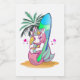 Gott och sött Unicorn njuter av sommarkänslan på stranden med en vacker surfboard. Underbar utrustning för den kommande sommarlovet. Bra för ungdomar och äldre