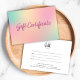 Det här presentcertifikatet har orden "gåvsintyg" i faux rosa glitter mot en mönster-bakgrund med enmajsblandning på framsidan. Anpassa den genom att ersätta platshållartexten och platshållarbilden med en egen logotyp. Om du vill ha fler alternativ, t.ex. att ändra teckensnitt, är det storlekt och mellanrummet mellan brev klickar du på knappen "Anpassa". *Observera att Zazzle Watermark som visas i zoomförhandsvisningen INTE visas på den färdiga tryckta produkten. © Rosewood and Citrus