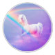 Vitunicorn, regnbåge och lilahimmel med rosa moln.