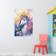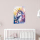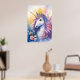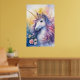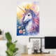 Poster av en majsmajs med en gyllene horn omgiven av vibrerande blommor. Dess mane flyter i skuggor av lila, rosa och blått, och blandas sömlöst in i en mjuk, drömmande bakgrund.