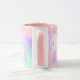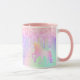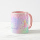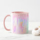 En holografisk trendig med enmajs och regnbåge pastel färg i rosa, lila, mynta grönt. Dekorerad med droppar i rosa och lila och två unicorns. Anpassa och lägg till ett namn, skrivet med ett modernt handskript i stil med dekorationer. Lila färgad brev. Om du bara vill behålla utslagen tar du bort exemplet namn lämnar du blankstegen eller symbolerna framför och efter namn.
