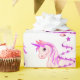 Rosa, gigantisk och söt. En liten julomslutning papper med en rosa Unicorn i en virrvarr av rosa stjärnor som formar Julgran. Den pappra matchen är en rad rosa Unicorn-anpassningsbar stationär.