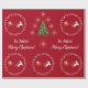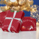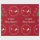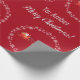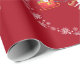 Elegant och söt personlig julomslutning papper med tomten i sin sömn dragen av en enhörn med gyllene och röda glitter i mane och svan, olika snöflingor och Julafton träd dekorerade med silver baubles. Perfekt för små barn, särskilt små flickor som gillar unicorns. Med hälsning "God jul!" (som du kan anpassa) i kursivt skript/kalligrafi för snyggt, tillsammans med ett eget namn. På Julafton röd bakgrund.