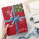 Elegant och söt personlig julomslag pappra med jultomten i sin själ som dras av en enhörning, olika snöflingor och Julafton träd som dekoreras med silver baubles. Perfekt för små barn, särskilt små flickor som gillar unicorns. Med hälsning "God jul!" (som du kan anpassa) i kursivt skript/kalligrafi för snyggt, tillsammans med ett eget namn. På Julafton röd bakgrund.