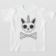 Den här grafikturen biet kombinerar den vita och makabra, med en stiliserad skalle med stor, uttrycksfull ögon, en enmajshorn och kattlik öron. Som vi ser på Sophies t-shirt, åtföljs skallen av korsben, vilket förbättrar dess lekande men gotiska attraktionskraft. Utformningen användor ett enkelt svart-vitt färg-system, som betonar bildens fet och grafiska karaktär. Denna unika blandning av inslag gör det till en perfekt för dem som uppskattar en blandning av fantasi, mörk humor och minimalistisk konst.