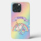 Den här söta och färgstarka anpassningsbarna har en vacker illustration av ett enhörnigt och pastellartat regnbåge över en regnbågsbakgrund. Faux guld glitter accentuerar överdelen och grund. Små stjärnor i matchande färg omger regnbågen. En banderoll skrivs ut ovanför encorn med ett exempel namn som skrivs ut nedan med ett elegant-skriptteckensnitt för lila. Du kan anpassa telefonärendet så att ditt eget namn eller egen text inkluderas.