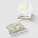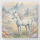 En sten underlägg en drömbild av en vit enhörn med en regnbåge i ett fält av blommor. I bakgrunden finns stora berg. Perfekten är en gåva till ge till dem som kärlek magiska och mystiska unicorns. Innehåller generativ innehåll.