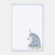 En vitunicorn med härligt långt blåtthår. Med dekorativa vitblommor. Unicornhand plockade med färgpennor.
