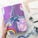 En fantastisk lila och rosa encorn som är papper med en enmajsfråga för födelsedagsfest. Utformningen har rosa-unicorns med hjärtan, tårtburkar, regnbågar och fluffmoln, regnbågsstripade födelsedag och rosa gnistrande hjärtan med blått vingar och rosa fluffy-drycker med körsbär, allt på sötens lila.