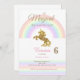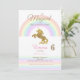 De här enmajsinbjudningarna har en regnbåge och en gyllene enhörning. De säger: "En magisk dag är på väg!"