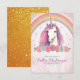 Ett fint tack. vågigt hår, ro och en glitterega regnbåge i ryggen. Mycket söt och söt. Färg är rosa, blått, lila, guld och grönt. Mycket roligt för en enhörning, födelsedagsfesten!