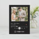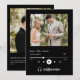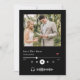 Det här enkla och elegant svarta och vita bröllop spara datum-kortet innehåller ditt foto på framsidan, med en enkel och elegant serif-text, med en musikspelare grund på framsidan. Lägg till datumet på framsidan med start- och sluttid om det behövs. Det finns utrymme för ytterligare information på baksidan, inklusive webbplatsen för bröllop.