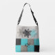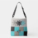 Unik Aqua Black Tan Tote Bag med blommor Axelväska