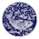 På mörk blått på skarpa vita, så har min Koi-fisk som målar ge ett slående, unikt utseende. De stiliserade dammväxterna inspireras av orientaliska kiniseripotterimotiv. Perfekt för blå och vit dekoration, för älskare från djur och natur samt för använda av hantverk. Ursprungligen målad på den brända keramiska plattan för en djup rik. Nyskapande, unika teckningar och design av Tuzi Williams.